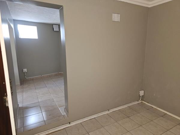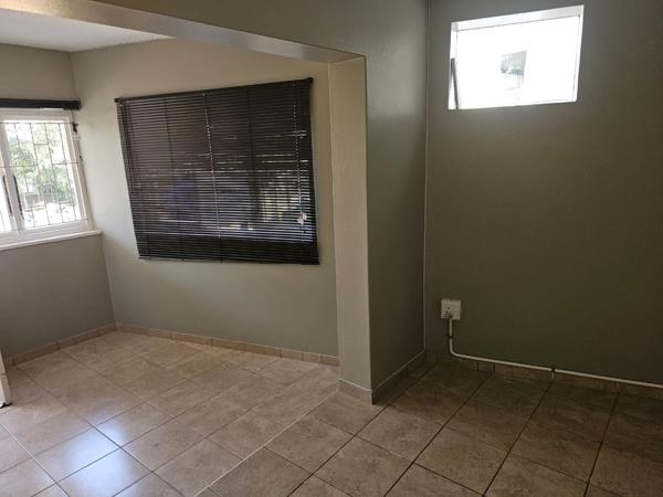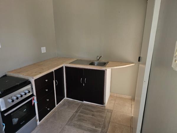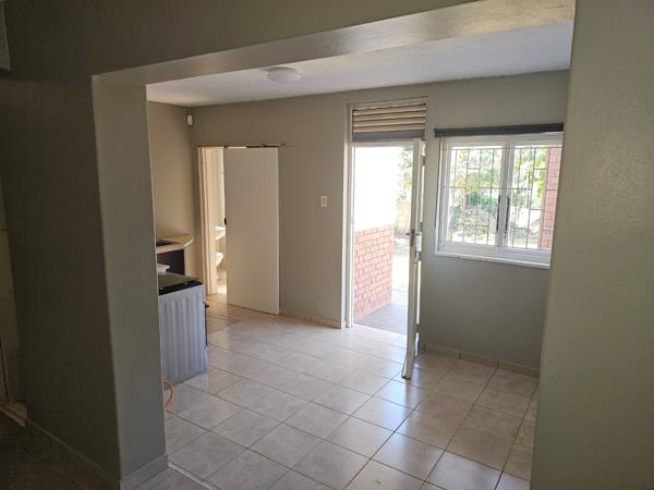 1 bedroom flat with lounge, kitchen and bathroom with shower. 1 Parking space. Electricity is prepaid. Water is a set figure of R750.