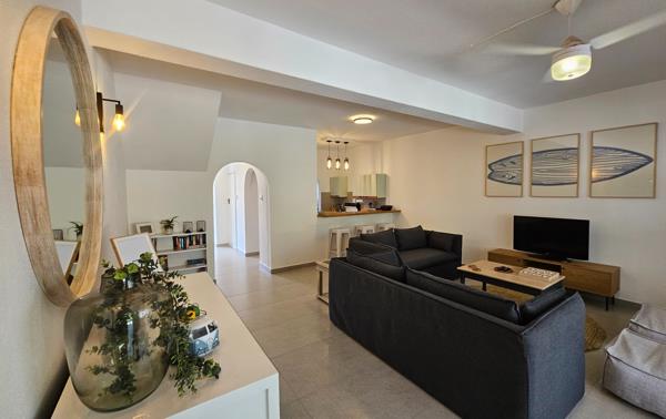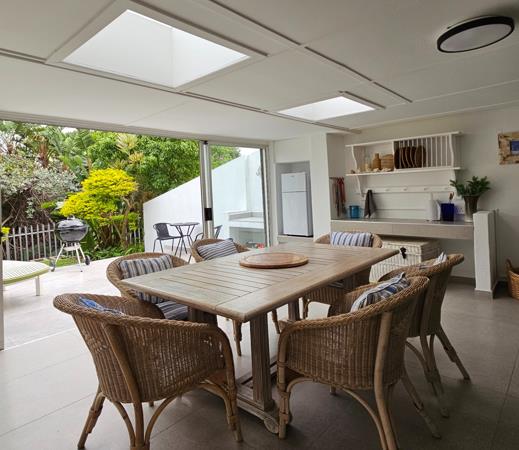 A perfect holiday destination, this unit is situated with the beach in front & the Golf Course at the back. The double story unit offers you 3 bedrooms & 2 bathrooms sleeping a maximum of 6 guests. This freshly decorated townhouse has open plan kitchen, living & dining space which opens out onto an enclosed patio, with braai facilities & small garden. On the top floor you will find a magnificent deck with lovely seaviews.