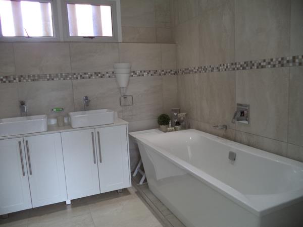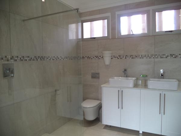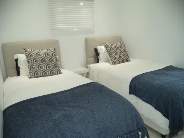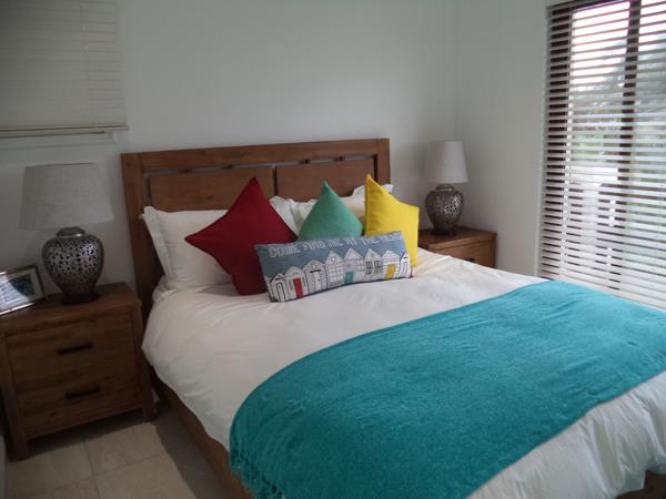 The home has a separate scullery with open plan kitchen to the dining room & lounge with bar area & large patio on the ground floor. Upstairs the home has three bedrooms, two of which have a balcony with a view of the Lagoon & two bathrooms, the main is en-suite. Single garage with the laundry facilities as well as a separate guest bedroom with en-suite bathroom finish off the ground floor offerings. There is a fenced off communal swimming pool & braai area.