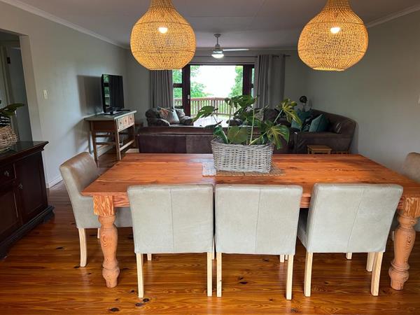 Situated on the Umkobi Lagoon in Southbroom, you will find this beautifully furnished, upmarket log home, in a secure complex with ample parking. The unit offers a tranquil environment with lush greenerary surrounding the home. This spacious, open plan home with is fully equipped for a maximum of 7 guests in three bedrooms, all rooms have fans for those hot summer evenings.