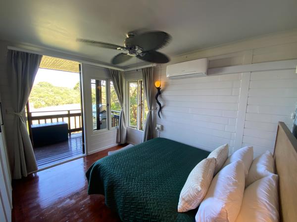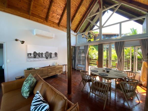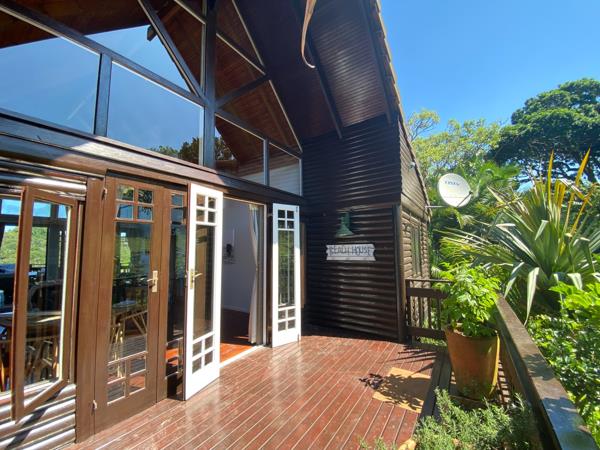 Situated on the Umkobi Lagoon in Southbroom, you will find this beautiful upmarket log home. Suspended on the waters edge, in a secure complex with ample parking, the unit offers a tranquil environment with unobstructed breaker views over the lagoon and Umkobi beach. This spacious home has two patios, open plan living area with gourmet kitchen. The three bedrooms each have fans, two of the bedrooms open out onto the front patio overlooking the river.