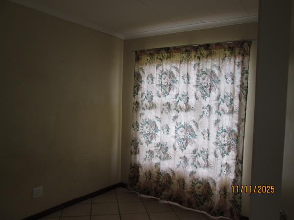 The unit is a 3 Bedroom house with 1 kitchen,1 lounge,2 bathrooms, and a double garage. It has built-in-cupboards. There is a prepaid meter.
