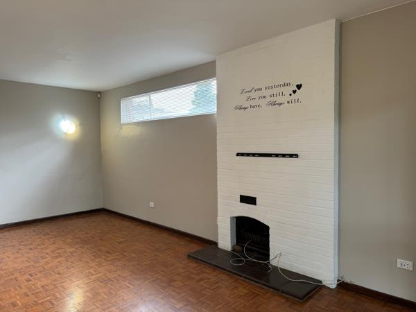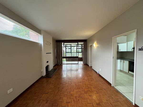 The bedroom is spacious and comes with ample built-in cupboards, while the living area features beautiful parquet flooring and a cozy wood-burning fireplace, perfect for creating a warm, inviting atmosphere.