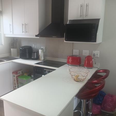 This unit boasts two bedrooms with built-in cupboards, kitchen with built-in cupboards as well as fitted hob, oven and extractor, bathroom with bath, shower, toilet & basin and an open-plan lounge.