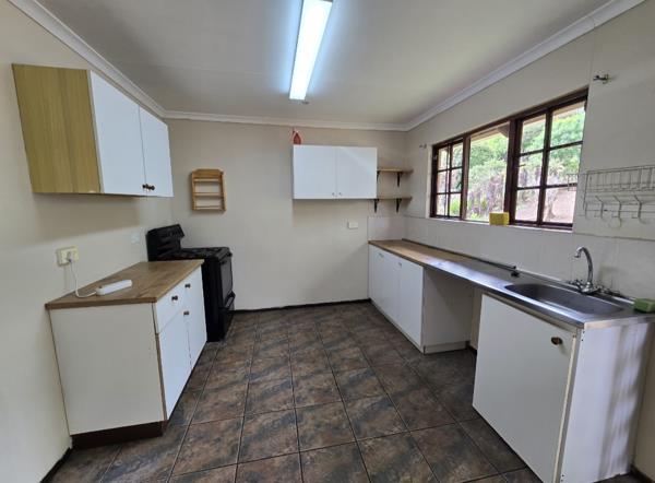 The property includes three bedrooms, two of which are equipped with built-in cupboards, offering convenient storage. A well-sized lounge with lovely natural lighting creates a welcoming living space and opens directly onto the garden, allowing for easy indoor-outdoor flow.