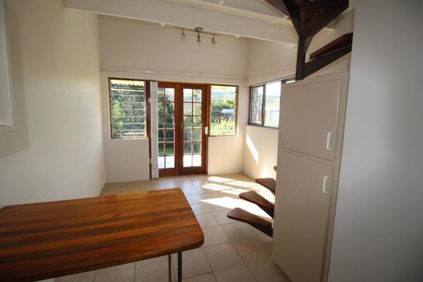 Kitchenette, plumbed for a washing machine. Open plan living area with a loft bedroom space.