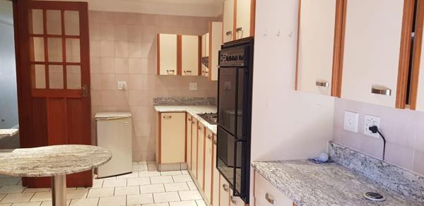 Step into the heart of the home, where a neat kitchen adorned with built-in cupboards BIC and sleek granite countertops.