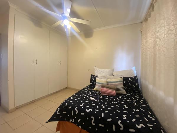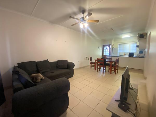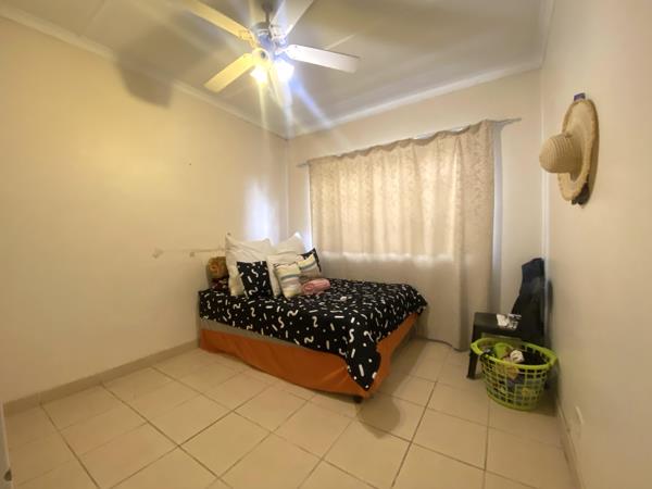 The apartment features two well-sized bedrooms with built-in cupboards, a functional kitchen, a spacious lounge area, and a bathroom with both a bath and shower. The property also includes one covered parking bay for your convenience and security.
