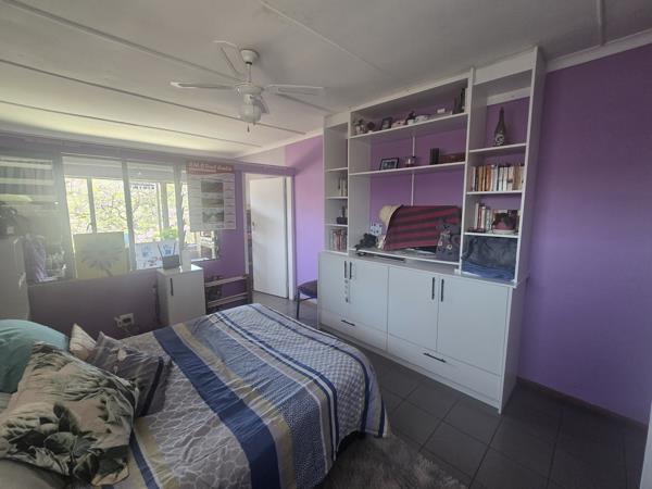 The main bedroom is generously sized with ample built-in cupboards. An added bonus is the enclosed balcony, which can be used as a home office or an extra bedroom.