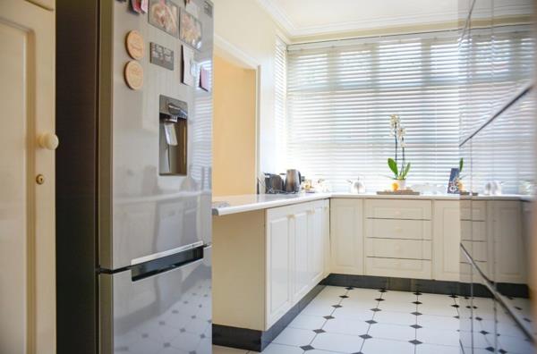 Large kitchen with a built in stove with extractor, fridge freezer, washing machine and dishwasher. There is a breakfast nook which opens onto a spacious dining lounge with a lovely bay window.
