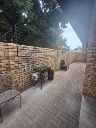 Step outside to a low-maintenance paved outdoor area, perfect for entertaining with its built-in braai stand. The property boasts excellent security features, including high brick walls, electric fencing, and an access gate, providing peace of mind. Further enhancing safety are security gates on doors and window bars. Parking is well-catered for with a dedicated covered carport and additional paved communal parking space, ideal for residents and visitors alike.