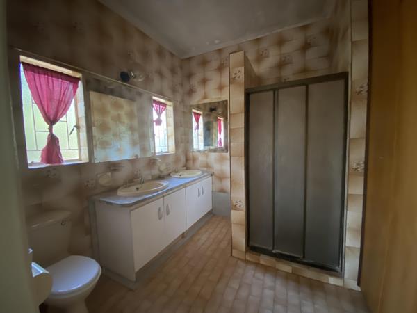 The main bedroom has a shower, double basin, and toilet with a cupboard space, and is an ensuite.
