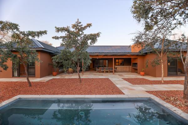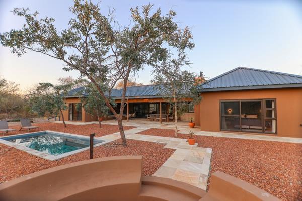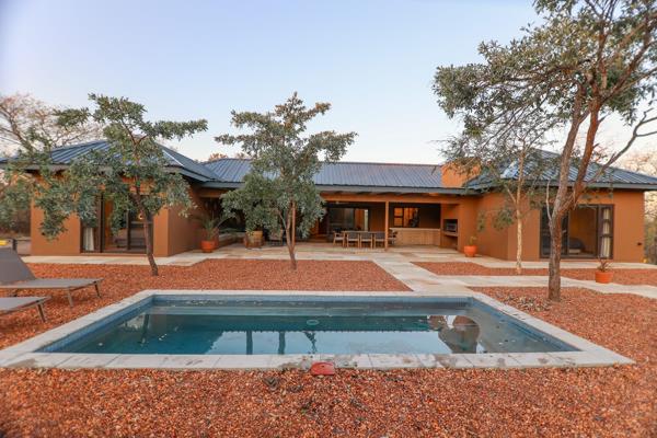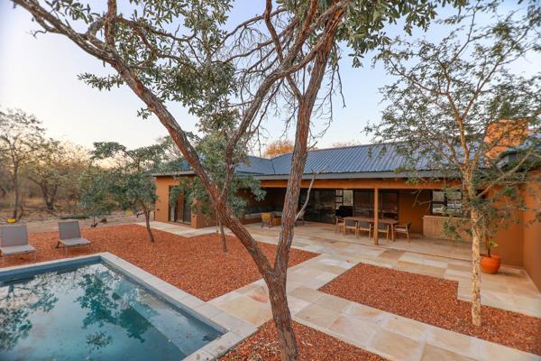 Each bedroom includes a stylish en suite bathroom with an outdoor shower, as well as its own private stoep, perfect for morning coffee or evening relaxation in nature. The spacious living areas flow effortlessly onto a covered outdoor entertainment space and a sparkling swimming pool, ideal for making the most of the warm Lowveld climate.