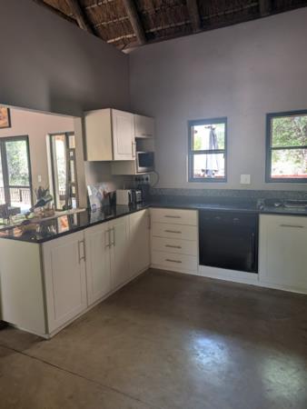 Escape to the bush in this lovely 3 bedroom, 2 bathroom house in Raptors View Wildlife Estate. The cozy open plan lounge/dining room area leads into the spacious kitchen and scullery.