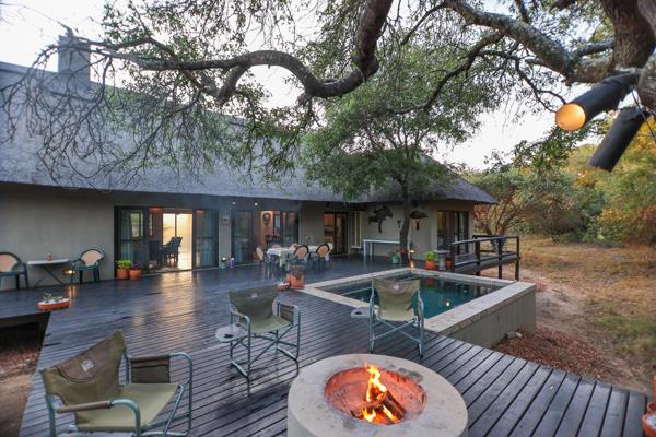 The heart of the home is a large, shaded wooden deck overlooking the dry riverbedideal for entertaining or simply relaxing in the peaceful surroundings. The deck includes a sparkling swimming pool and built-in braai barbecue area, perfect for warm evenings under the stars.
