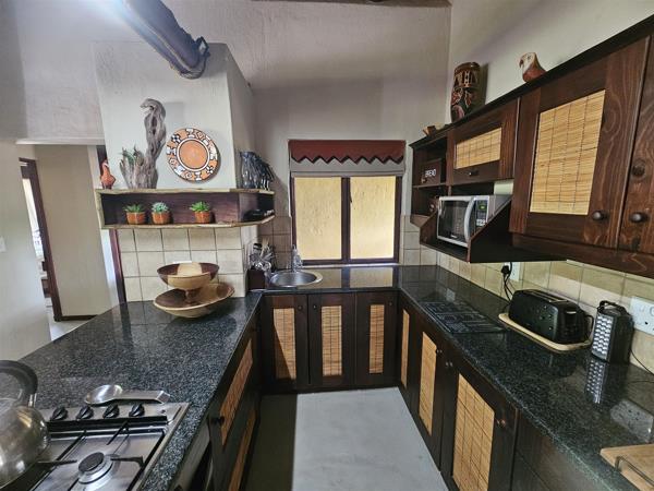 Enjoy the tranquility of the African bush in this beautiful, fully furnished 4 bedroom house in a lovely, peaceful part of Raptors View. This home is move-in ready and has a spacious open plan lounge and dining room cooled by fans, with the kitchen and separate scullery alongside. There is also an outside courtyard. The scullery has a washing machine, tumble dryer and washing machine.