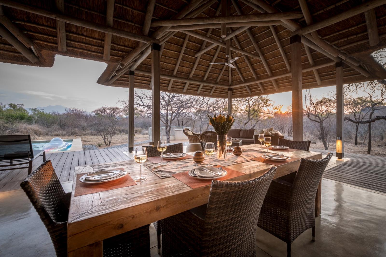 With our warm climate that provides sunny days nearly all year round, Villa Marula has taken special consideration for this with its covered patio area that is completed with a 6-seater dinning set for dinner in the African bush along with a weber BBQ for our braai enthusiast and sun loungers for lazy days spent around your private heated swimming pool. Not to forget the view of the Little Drakensberg mountains and varied trees that provide privacy for this immaculate villa.