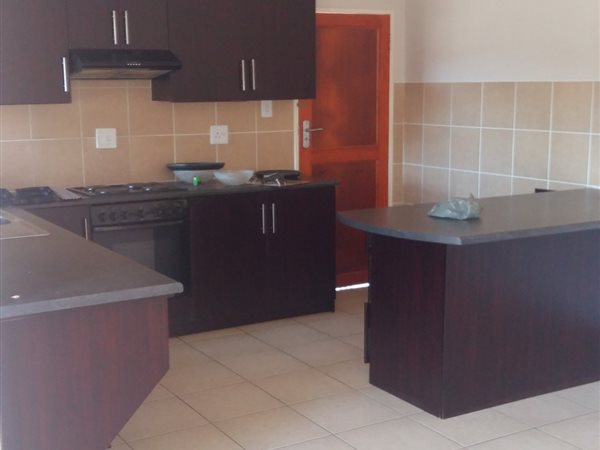 The home features a modern kitchen with ample cupboard space and an open-plan living area that leads to a lovely built-in braai area, ideal for entertaining family and friends. The main bedroom includes a full en-suite bathroom, while the other bedrooms share a stylish second bathroom all with built-in cupboards for easy storage.