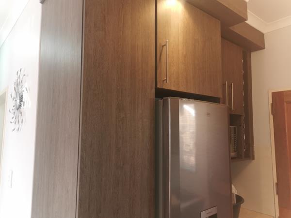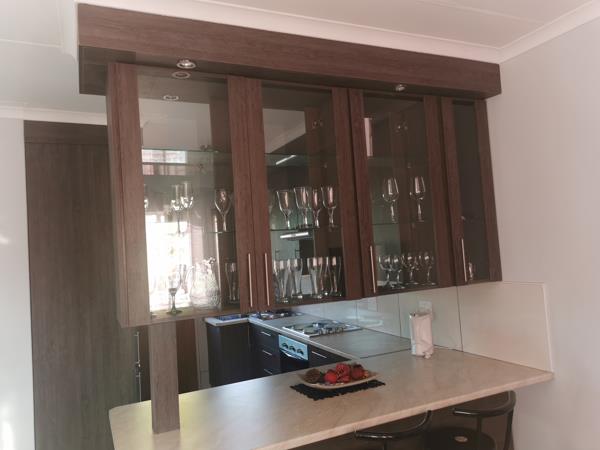 A stunning open plan kitchen and lounge with ample cupboard space. The kitchen has been designed with modern needs in mind.