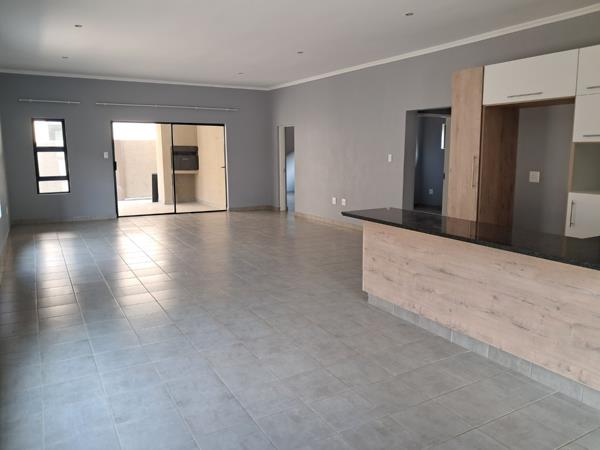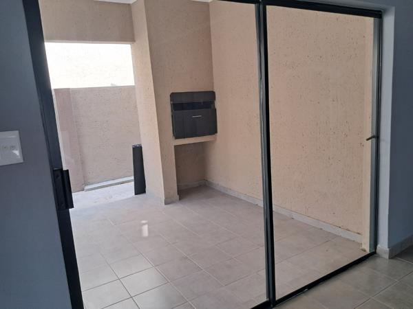 The spacious open-plan lounge and dining area flow seamlessly onto a covered patio with a built-in braai, creating the ideal space for entertaining family and friends. Additional features include 2 secure lock-up garages, tiled flooring throughout the home for easy maintenance, and pre-paid electricity to give you full control over your usage.
