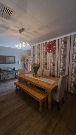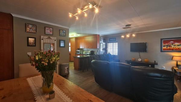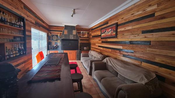 Large open-plan living and dining area complete with an indoor braai and built-in bar, ideal for year-round entertaining.