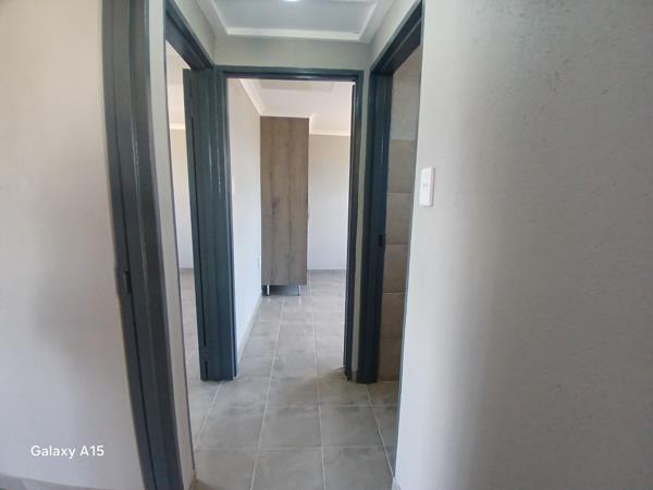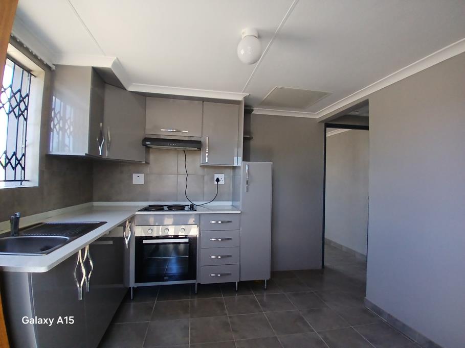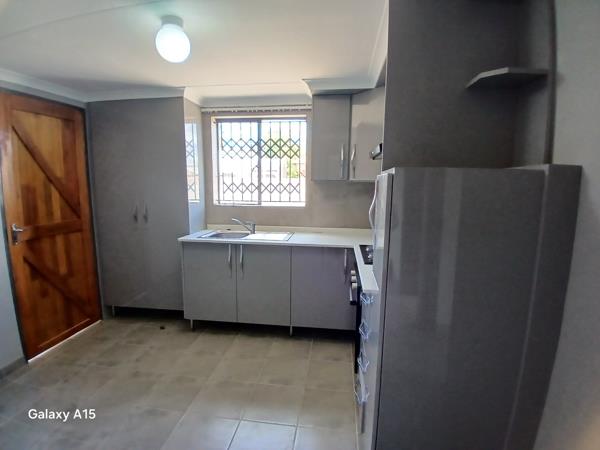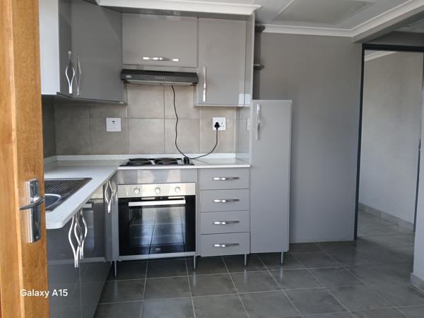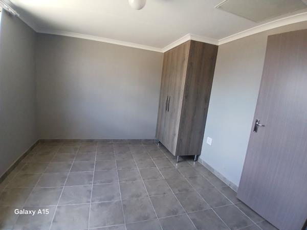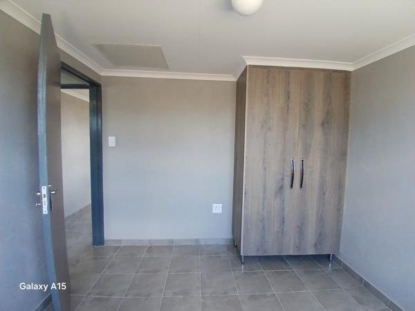 The home features a modern kitchen with ample cupboard space, and dedicated space for both a fridge and washing machine. All rooms come with built-in cupboards, providing plenty of storage.