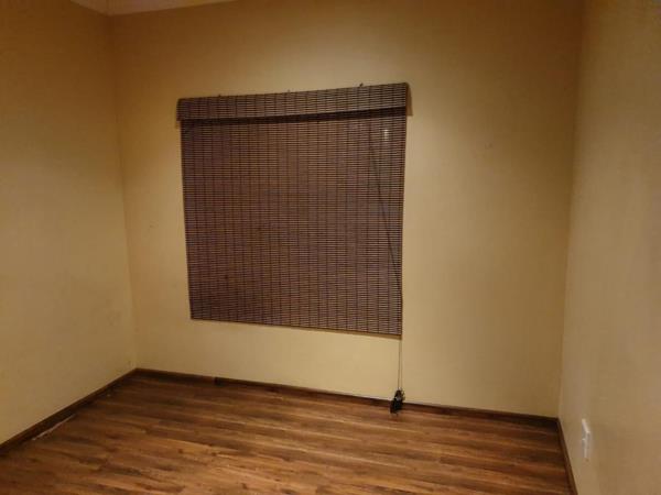 One inside room is available in a three-bedroom house with shared bathroom, kitchen, and dining area. The monthly rent of R3 300 includes water, DSTV, and garden services. Electricity is prepaid.