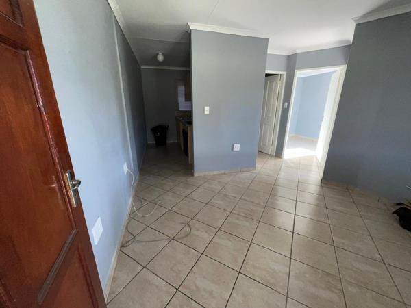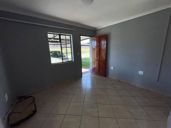 This inviting 2-bedroom, 1-bathroom rental property in Evander presents a practical and comfortable living solution. The interior boasts a fresh, modern aesthetic with recently painted grey walls and durable tiled flooring extending throughout, ensuring easy maintenance and a consistently clean look. The open-plan design creates a seamless flow between the living areas, offering a versatile environment perfect for relaxation and everyday activities. The functional kitchen is well-appointed, featuring an integrated stove and oven, a convenient double stainless-steel sink, and light wood cabinetry, all complemented by a practical tiled backsplash. Ample natural light streams into the rooms through well-placed windows, enhancing the bright and airy atmosphere.