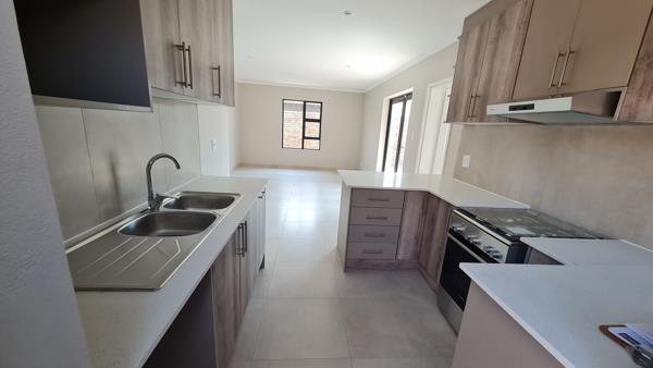 This beautiful face brick unit is brand new and is waiting for a new tenant. The open plan lounge flows into the kitchen and all the floors are laminated. This unit boasts 3 bedrooms all with fitted cupboards, two bathrooms, one is an en-suite with a shower.