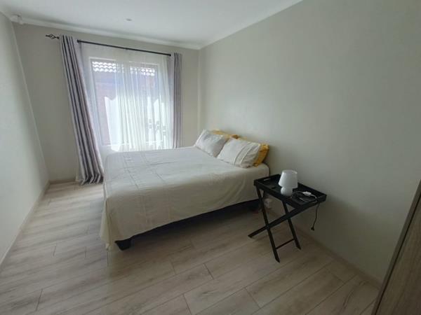 3 Bedrooms with built-in cupboards. Main bedroom with an en suite bathroom shower, toilet, and basin.