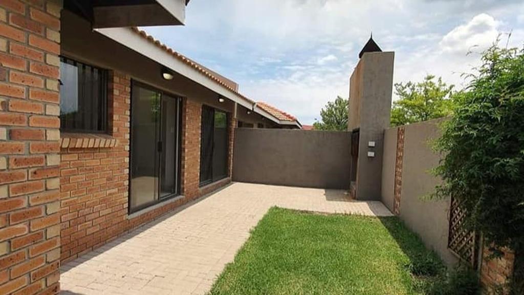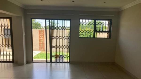Fully tiled out with modern finishes, a gas stove an open plan kitchen, a dining room area, a lounge area, trellis in front of all the doors and windows, a built-in braai area, a backyard and a single garage.