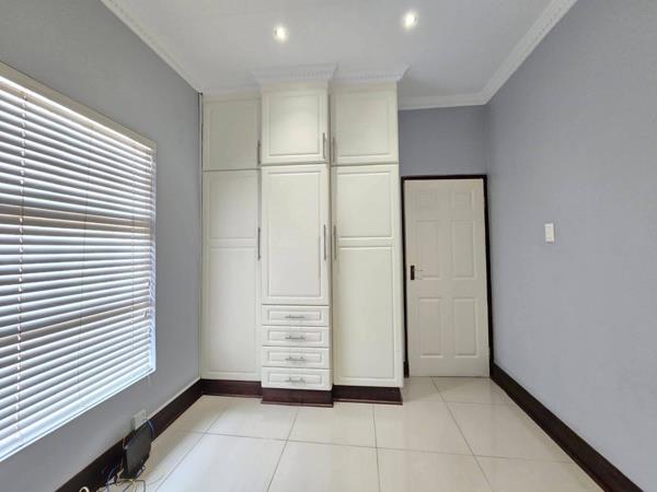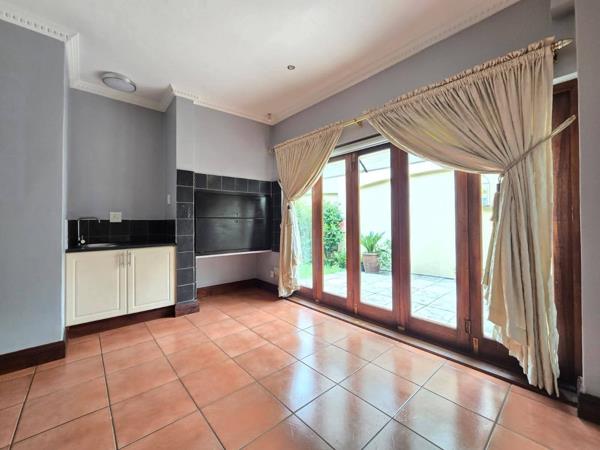 This stylish and upmarket 3 bedroom townhouse is located in a sought-after complex. It features 2 beautiful bathrooms, a sleek kitchen with a breakfast nook, seperate scullery and an open-plan living area that flows into an indoor entertainment area with a built-in braai. Additional amenities include a double garage, extra parking, an alarm system, and fibre readiness. Water is billed separately, and electricity is prepaid. This home is fitted with a Jojo tank, inverter system and a pet friendly yard. Domestic can be arranged at an additional cost.