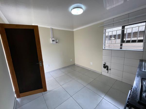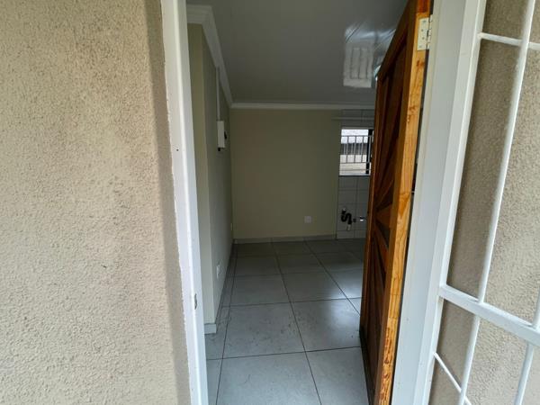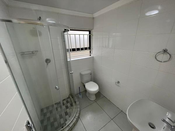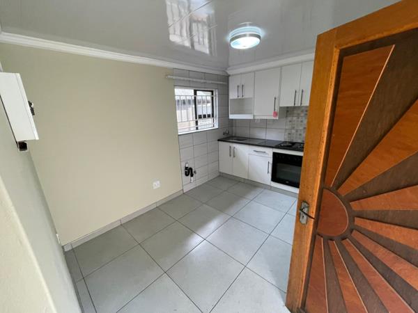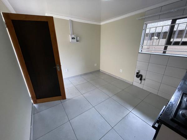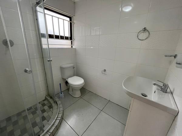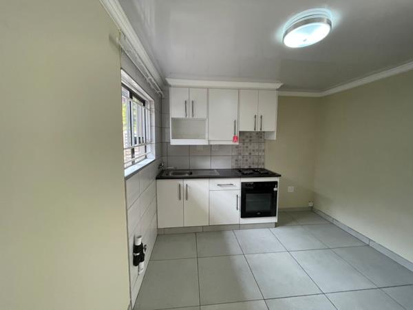 This compact 1-bedroom, 1-bathroom rental unit in Secunda offers a practical living solution. The interior features a modern white kitchen equipped with a built-in hob and oven, complemented by clean tiled flooring and freshly painted walls throughout. The open-plan layout integrates a comfortable lounge area, creating a cohesive studio-style living environment. The bathroom is fully tiled and includes a contemporary corner glass shower, a standard toilet, and a pedestal sink, ensuring a bright and functional space.
