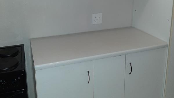 The kitchen offers ample cupboard space to meet all your storage needs.
