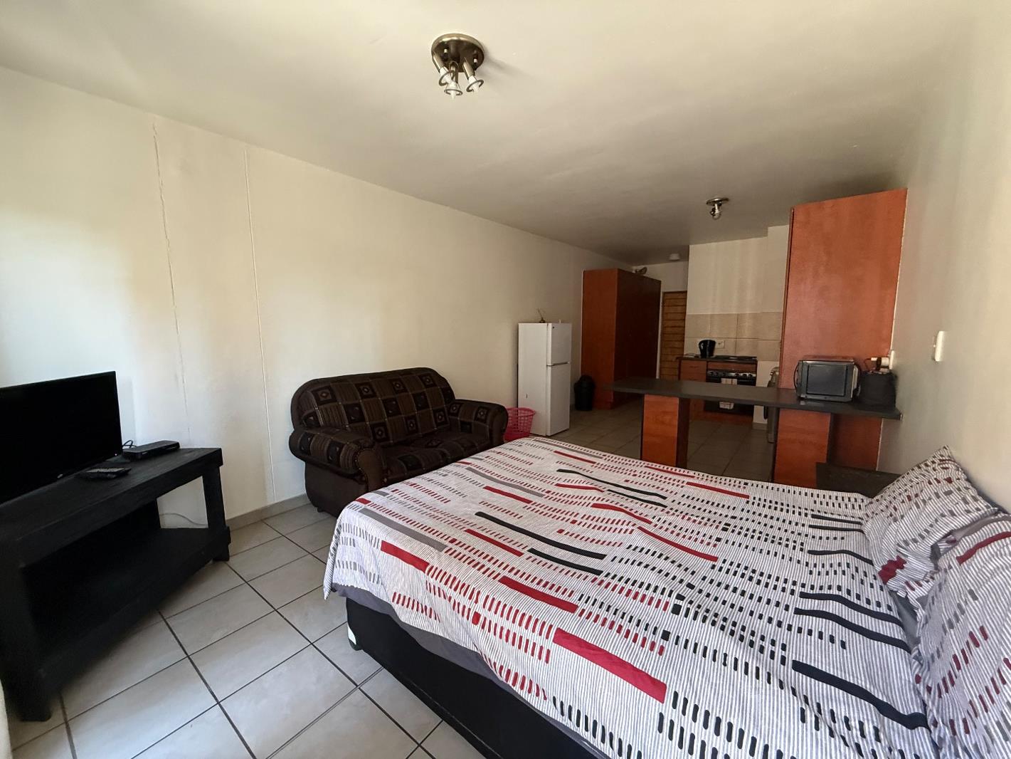 Afully furnished bachelor flatis available to rent in asecure complex, offering a well-designed open-plan layout that seamlessly combines the kitchen, lounge, and bedroom area. The unit is tastefully furnished, providing a comfortable and practical living space suitable for a single professional.