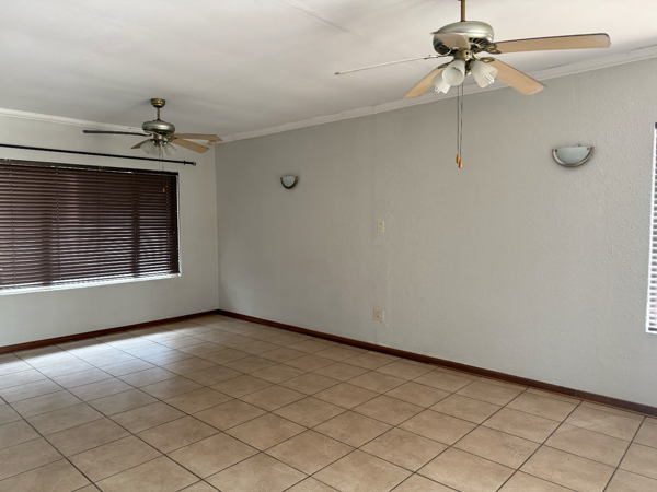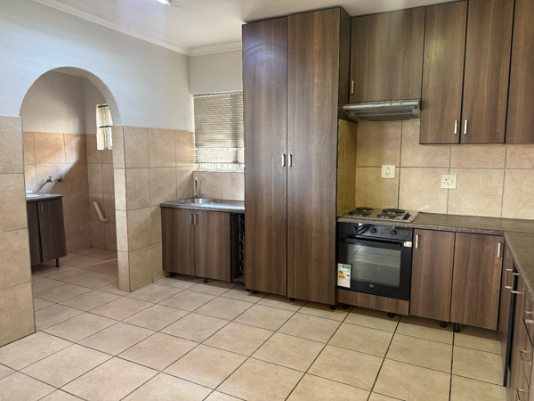 The home features an open-plan lounge, dining area, and kitchen, complemented by a separate scullery for added convenience. There are three well-sized bedrooms, with the main bedroom offering a walk-in closet. The property includes two bathrooms, with the main en-suite fitted with a shower.