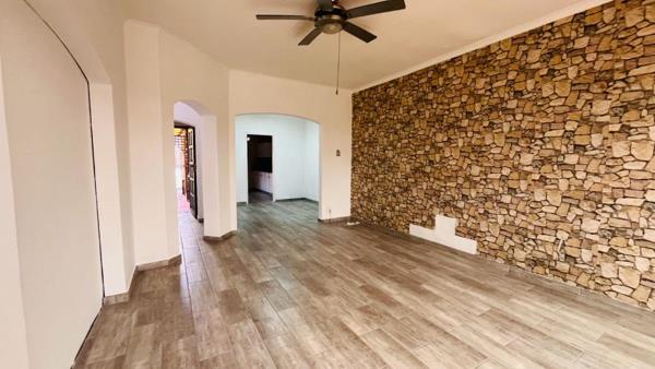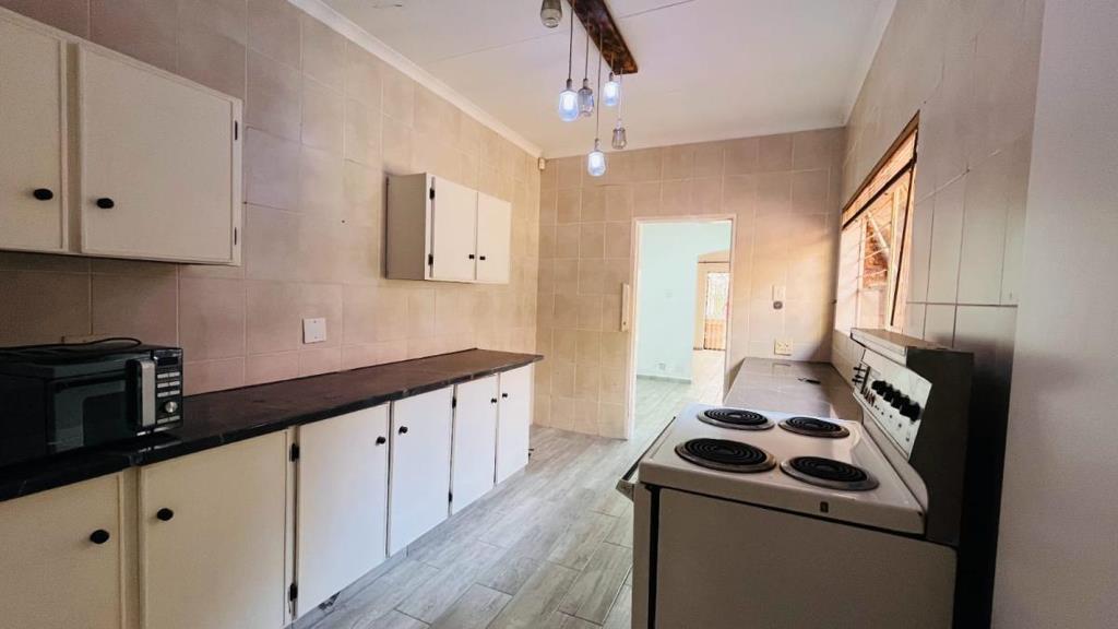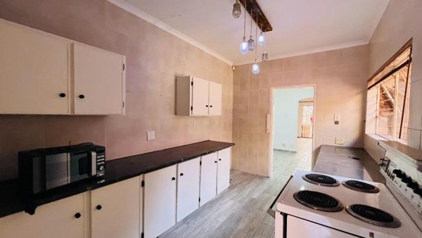 The open-plan living and dining area is perfect for family gatherings, while the family room provides a cozy space for relaxation. The well-maintained kitchen features a loose-standing stove and oven, scullery, and pantry.