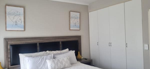 3-bedroom townhouse with built in cupboards and wooden tiled floors in bedrooms. 2 Bathrooms with main bedroom ensuite. Double, automated garage. 24 Hour security access.