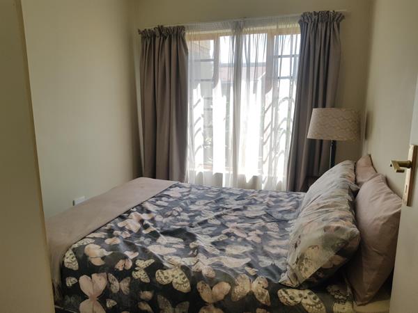 Furnished ground floor unit in 24 hour security estate offers 2 bedrooms both fitted with build in cupboards, bathroom, open plan living area, kitchen patio and carport
