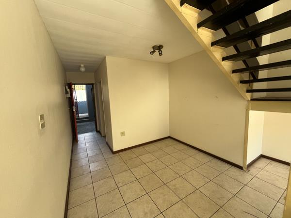 This neat and spacious 2 - bedroom flat is situated in the sought-after Coron Plaza complex in Evander. The unit offers 2 well sized bedrooms and full bathroom upstairs, providing privacy and comfort. Downstairs features an open plan lounge and dining room, perfect for easy living and entertaining. The flat is located in a secure complex close to shops
