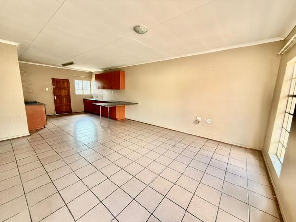 This lovely 2 bedroom townhouse boasts a neat bathroom, spacious kitchen with a breakfast nook and an open plan living area and a lock up garage. Water is included and electricity is prepaid. No pets allowed.