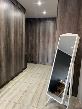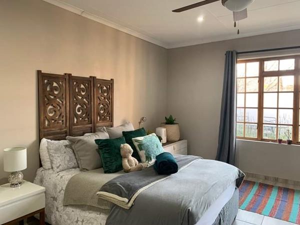 This extremely spacious 1 bedroom home has been exquisitely finished with modern interiors. It boasts a large bedroom and heated en suite bathroom with a massive walk in cupboard, guest bathroom, gorgeous kitchen with granite tops, 5 burner gas stove, seperate scullery, a breakfast nook and a spacious open plan living area with a built in braai, extra storage, automated garage, carport and a neat garden. This home is fitted with alarm system, 360 degree outside beams and is fully walled. This property is also fibre ready. Water is included and electricity pre paid. This property is perfect for people with sober habits looking for a peaceful environment to live in.