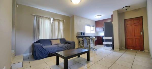 This Modern 2 Bedroom, 2 Bathroom(mes) townhouse comes semi-furnished and boasts a lovely kitchen with granite tops and a breakfast nook, open plan living area with a built in braai and lock up garage. Electricity is prepaid and water is billed. Wifi fascilities are also available for an additional fee. Unfortunately no pets allowed.