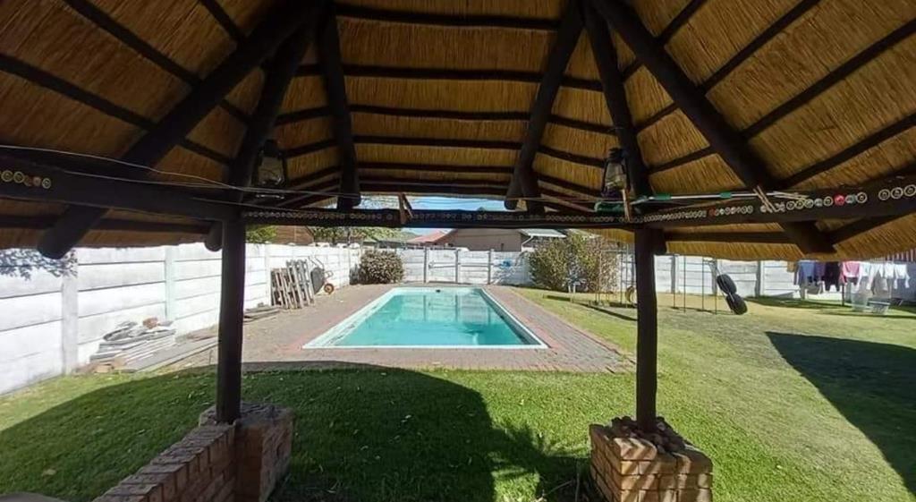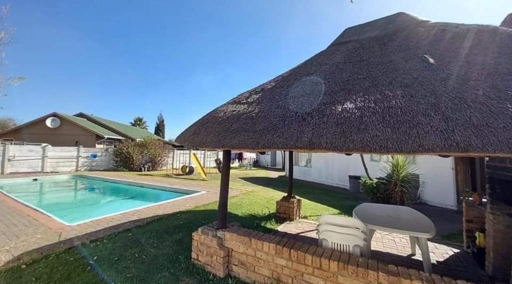 This neat 3 bedroom entertainer''s home is situated close to kruinpark and boasts 2 bathrooms, lovely kitchen with a seperate laundry, lounge, diningroom, lapa with a built in braai, swimming poolLeaking but will not be repaired, double garage, double carport, domestic quarters and a large pet friendly yard. Utilities to be billed.