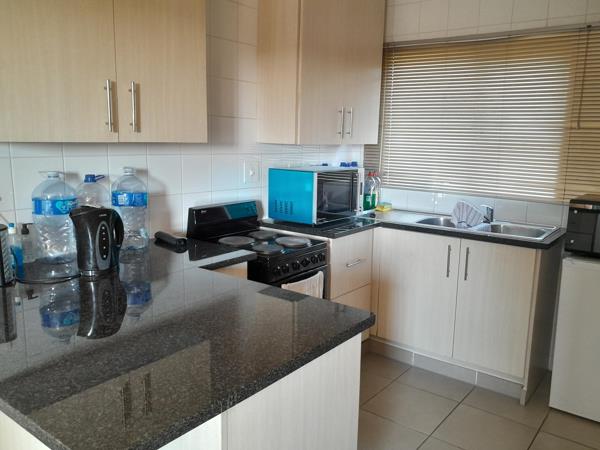1st floor - Cozy 1 x bedroom flat to rent, inside a safe complex, with an open plan kitchen and lounge and a bathroom and carport.
