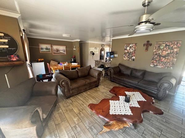 Step inside to discover a warm and inviting open-plan living and dining area, complemented by a practical kitchen with plenty of built-in cupboards. The home features four spacious bedrooms, all with built-in wardrobes, while the main bedroom includes its own private en-suite. A second full bathroom services the rest of the home.