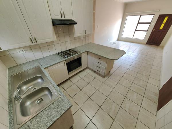 This neat 2 bedroom townhouse boasts 1 full bathroom, spacious open plan living area and stunning kitchen, lock up garage, built in braai. Solar geysers, gas stove and prepaid water and electricity which makes this property very economical. NO pets allowed.