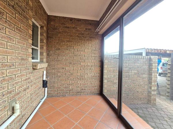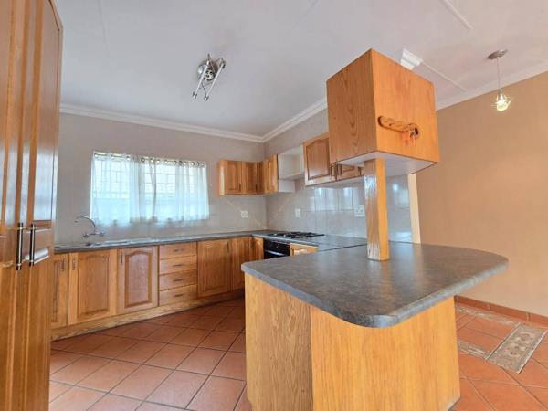 This spacious 1 bedroom apartment is not your ordinary 1 bedroom. This property boasts a full bathroom, big kitchen with a breakfast nook, open plan living area, seperate scullery, outside entertainment area with a built in braai, double carport and a small yard. Electricity is prepaid.
