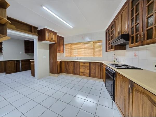 This spacious 3 bedroom home boasts 2 neat bathrooms, 2 guest toilets, living and dining room areas, seperate study room, neat spacious kitchen with lots of cupboard space, indoor entertainment area with built in braai and bar. This home has a large pet friendly yard and comes with a 5250l JoJo tank, staff quarters, 4 garages and is fibre ready. BONUS - 1 bedroom flat with its own bathroom, neat kitchen, living room area and carport with its own pet friendly yard wich can generate a seperate income. Electricity is prepaid and utilities to be billed.