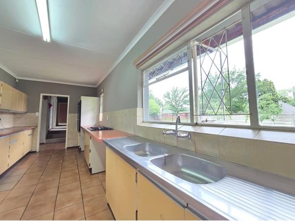 This spacious 4 bedroom home boasts 2 neat bathrooms, neat kitchen with a seperate scullery, living room/dining room areas and is fitted with an alarm system. This home has a large well maintained pet friendly yard with double garages, staff quarters and is fibre ready. Electricity is prepaid and utilities to be billed.